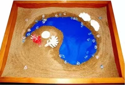 与沙、水和物件游戏是儿童把其对世界的认识客观化的一种理想方法。可以借此定义、限制,从而最终控制这些认识。沙盘游戏是一个强大有力的媒介,它使儿童能够表达出他们无法理清的有意识的及无意识的内容。